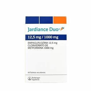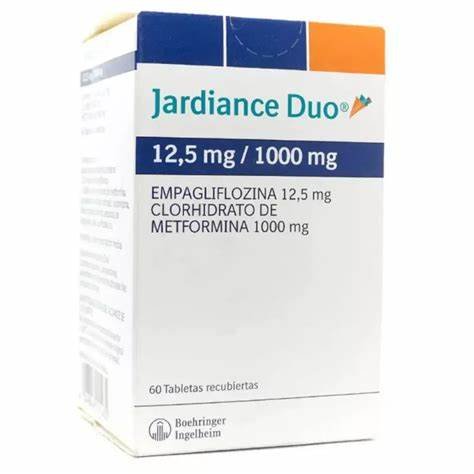 Jardiance Duo es un medicamento oral indicado para el tratamiento de la diabetes mellitus tipo 2 en adultos. Combina dos principios activos: empagliflozina y metformina. La empagliflozina es un inhibidor del cotransportador de sodio-glucosa tipo 2 (SGLT2) que reduce la reabsorción de glucosa en los riñones, facilitando su eliminación a través de la orina. La metformina es un agente sensibilizador a la insulina que disminuye la producción hepática de glucosa y mejora su utilización periférica. Esta combinación ayuda a mejorar el control glucémico en pacientes con diabetes tipo 2.